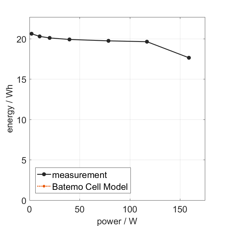 Batemo measured the C/10 energy by discharging the cell at an ambient temperature of 25°C from 100% with a constant current of 0.58A (0.1C) until reaching the voltage of 2.5V. The thermal boundary condition is free convection. |